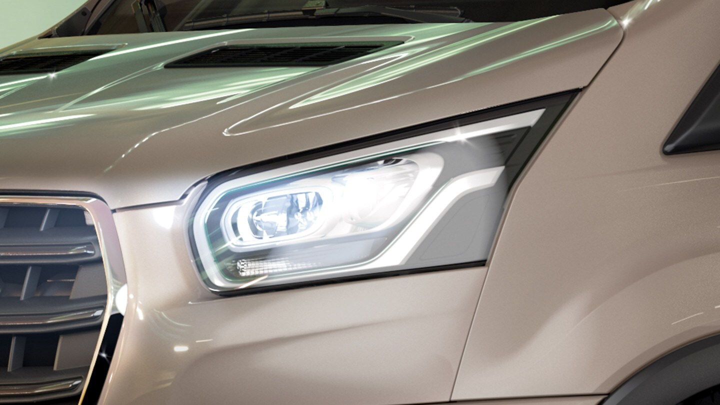 Zur Serienausstatung des Ford Transit gehören die Geschwindigkeitsregelanlage (einschließlich Fahrspur-Assistent), der Pre-Collision-Assist mit automatischerm Notbremsassistent und das Reifendruckkontrollsystem.